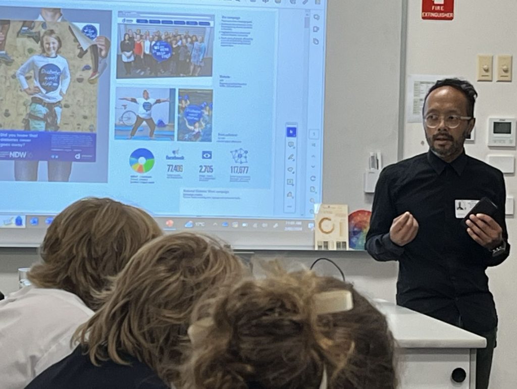 Nino Soeradinata, Graphic Designer and Video Producer is currently working for Diabetes Victoria. His impressive folio of past projects for a diverse range of clients including Rip Curl, Melbourne Zoo and Victoria Tourism, provided students with an appreciation of the scope of possibilities a career in graphic design has to offer. His unconventional design journey, passion and thoughtful approach spoke to the value of curiosity, versatility, and adaptability in the design industry. Students were introduced to the nuances of graphic design in a healthcare context, where a human-centred approach is vital to communicate effectively and sensitively to your audience.