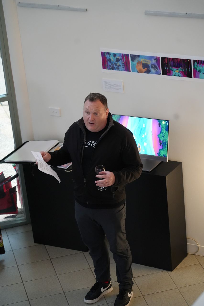 On Friday 18 October, the annual Year 12 Visual Art and Design Exhibition was opened in the Visual Art Exhibition space. The exhibition is a culmination and celebration of the final Year 12 VCE Art Making and VCE Visual Communication Design folios that the Senior students have undertaken. The exhibition opening included guest speaker Aaron Wallis, Director of Playce, an award-winning studio that designs diverse and dynamic experiential environments for all ages for play, active recreation and social connection.