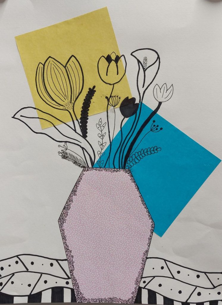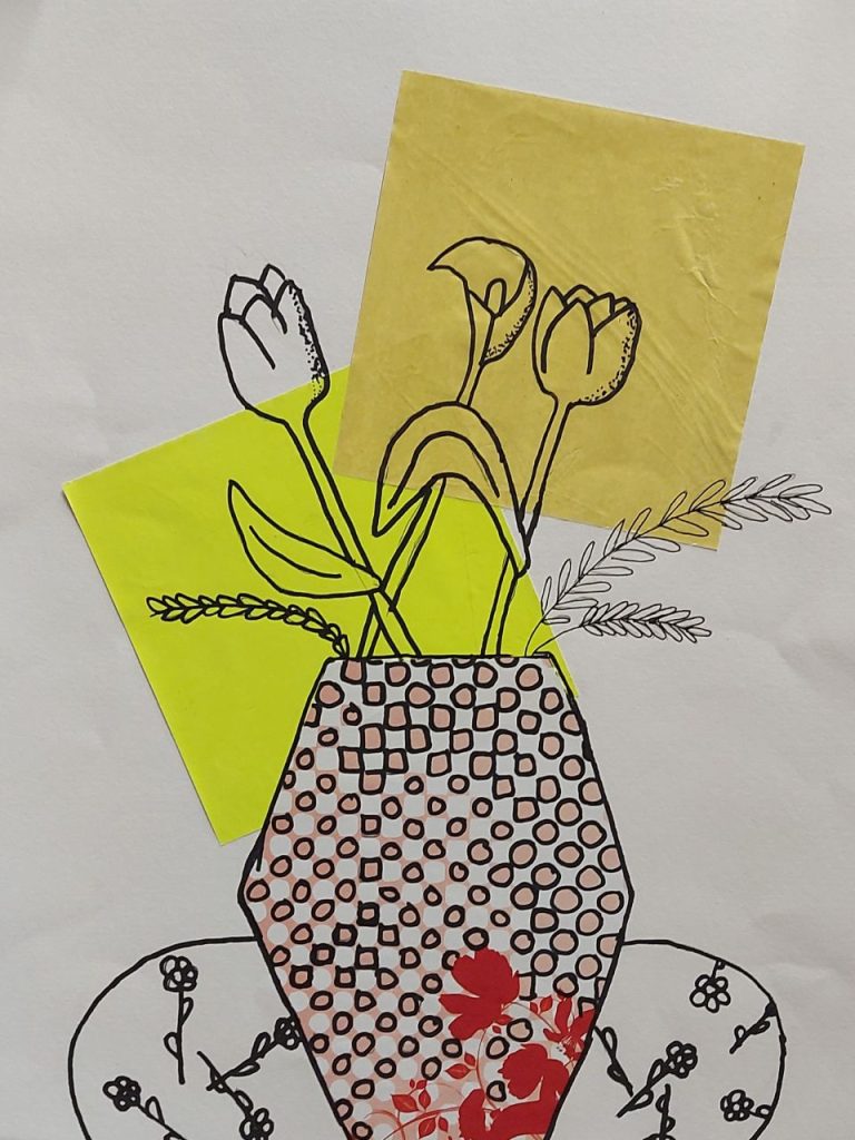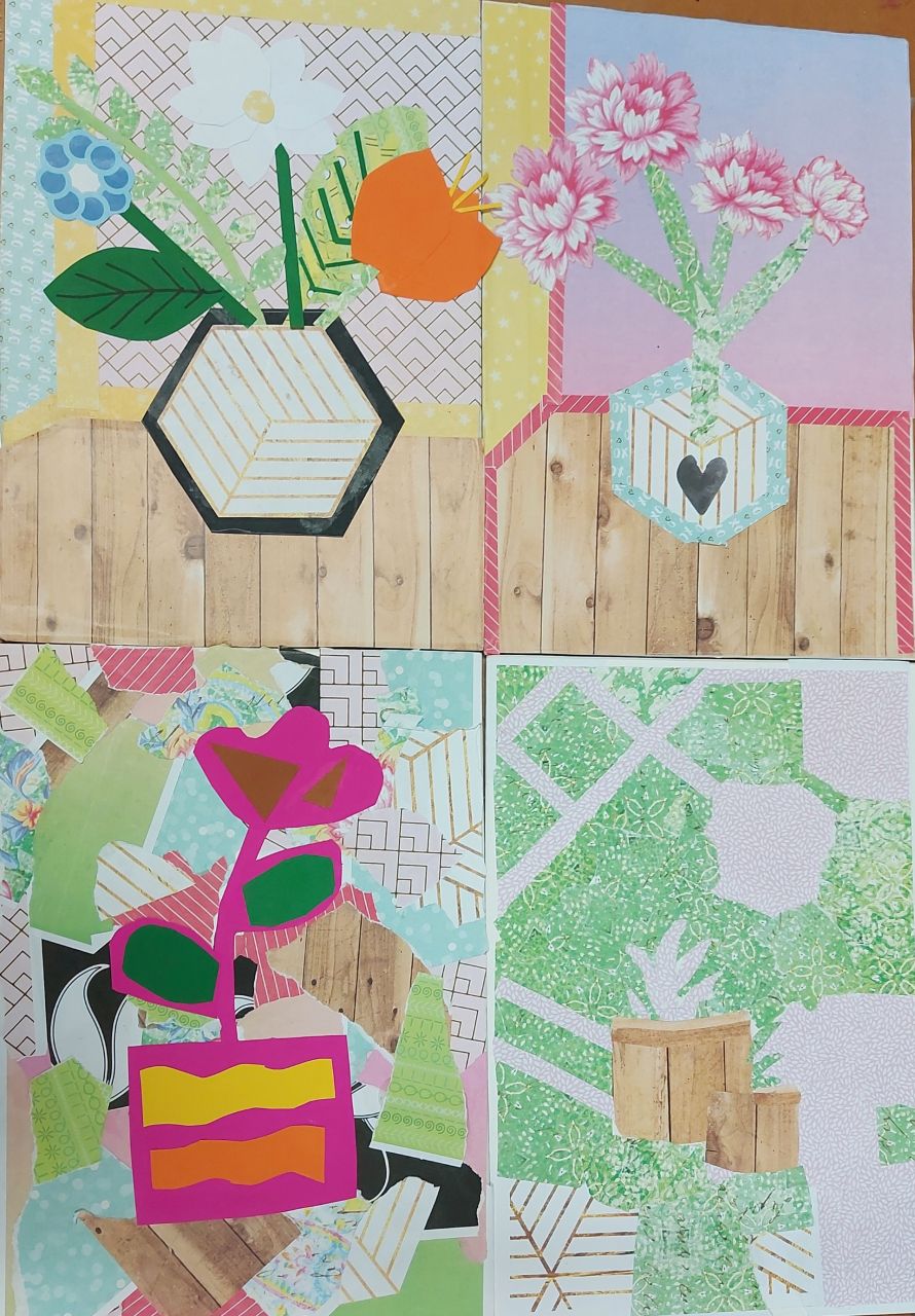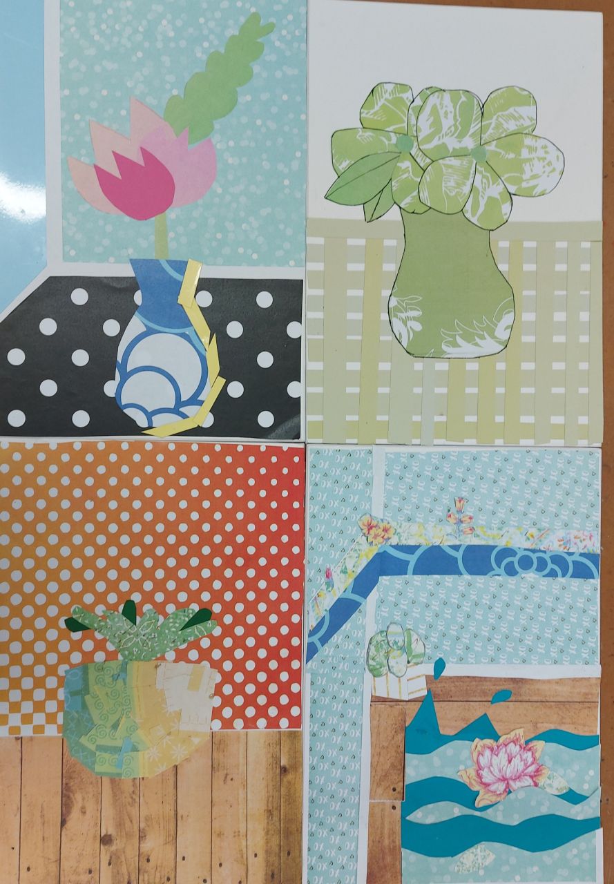 Year 5 students truly shone with unique still life pieces based on collage, using decorative patterned papers.