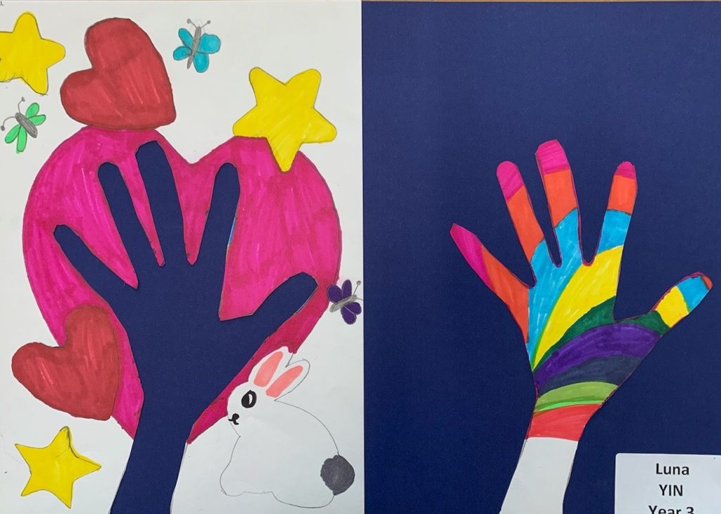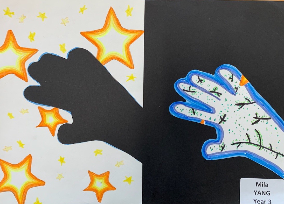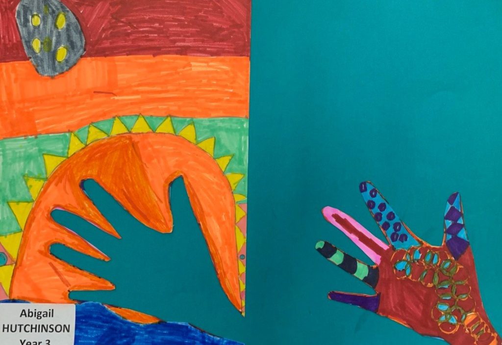 Year 3 students explored the theme of hands, experimenting with colour and composition while exploring positive and negative space.