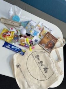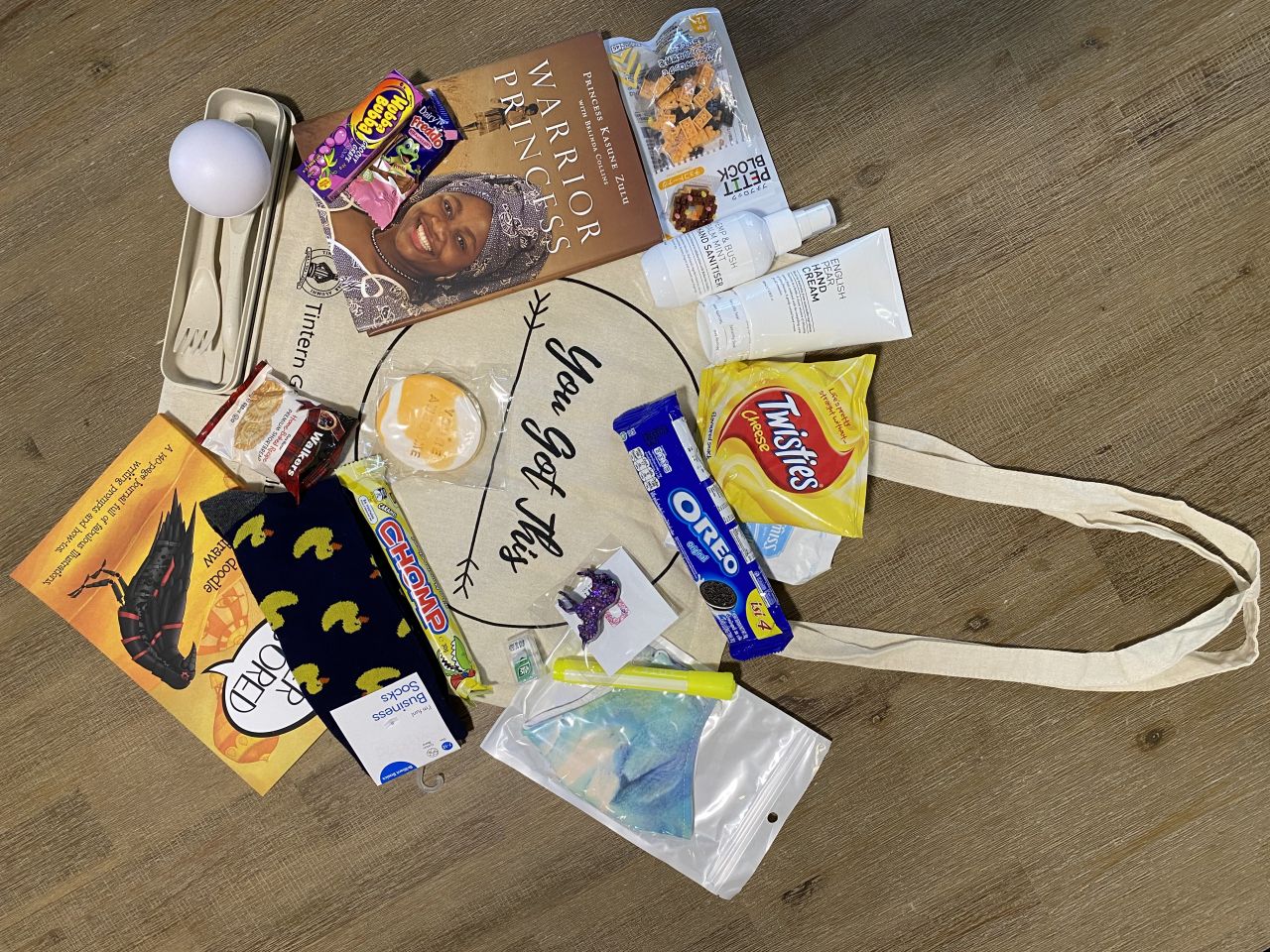 The bags contained a range of goodies including: a stress ball, cookie, bamboo cutlery, a colouring book, Warrior Princess by alumna Belinda Collins (YG 1991), clay resin magnet/bookmark, highlighters, fun socks, hand sanitiser, hand cream, a custom reusable face mask, lollies/chocolate and many more items to support our Year 12 students.