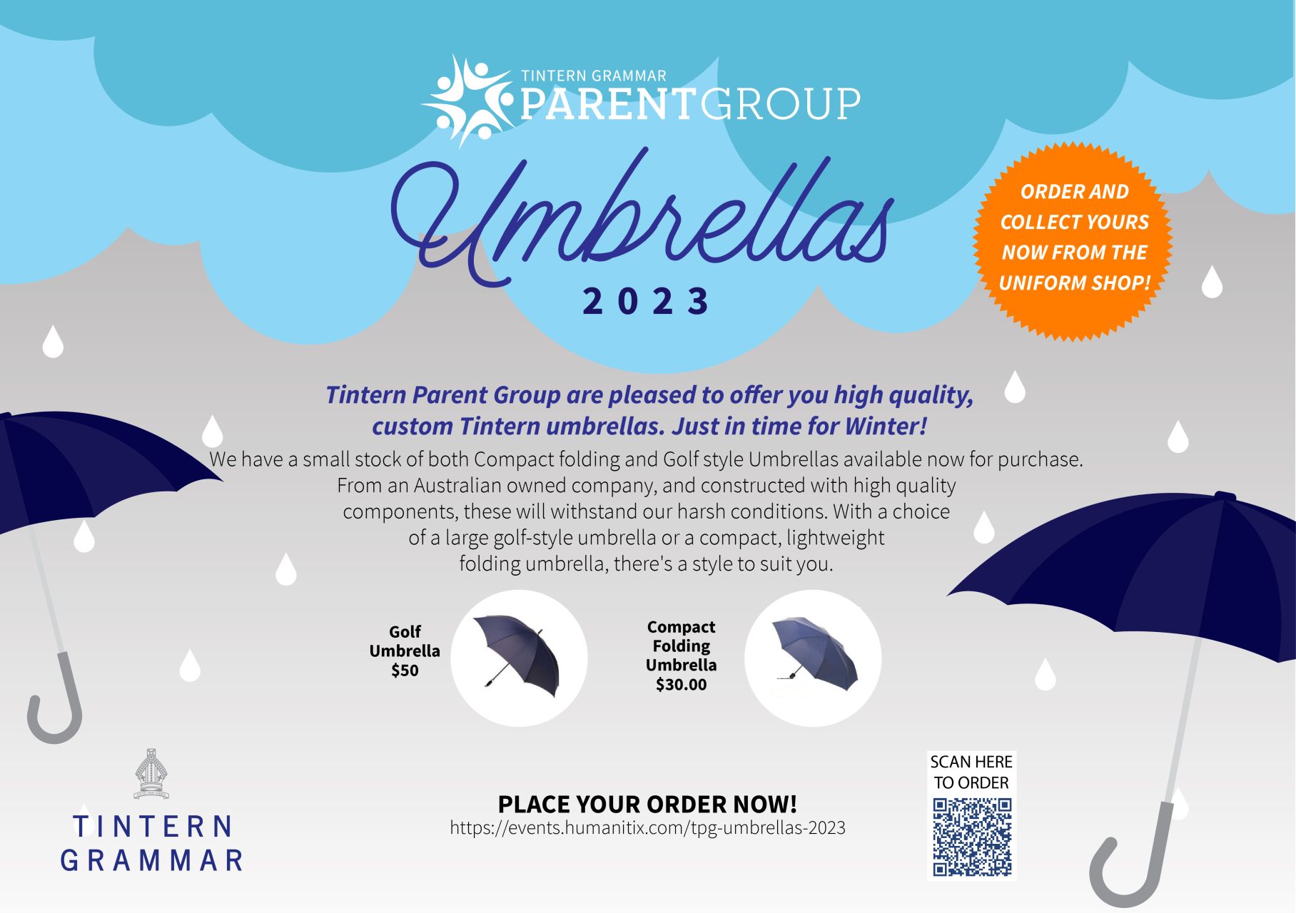 Orders your online here: https://events.humanitix.com/tintern-parent-group-umbrellas-2023