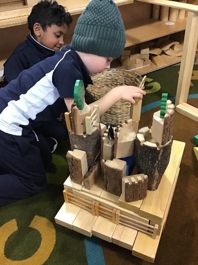 Giving children these experiences enables them to make their own choices, engage in collaborative play, develop negotiating skills and develop both fine and gross motor skills. This in turn enables a child to plan, design and construct with 3D materials. Block construction encourages children to engage in symbolization and representation, make comparisons, classify, learn about directionality and sequencing and experience divergent thinking and logical reasoning. It provides opportunities for learning about mathematical concepts of size, shape, space and weight, along with developing imagination and creativity.