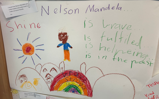‘I love how Nelson Mandela tried to be friends with the white people and helped to change the world.’ Julia
