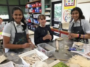 The Junior School girls always have an enjoyable time in the Art room. The routine is very familiar to the girls, the first few weeks of Term 2 are spent on their self-portrait and then we begin the highly anticipated Mother’s Day gift. All the girls await with excitement: what their year level will be making and creating. This year the Preps continued the long-standing tradition of the Mother’s Day cushion. The girls drew their mother and using transfer crayon, heat transferred the image onto a cushion cover. The Grade 1’s created and made using clay a basket of flowers. Clay certainly was the preferred material with the Grade 4’s making and glazing a coil bowl. Grade 5’s a clay slab abstract jewelry tray and the Grade 6’s a little clay sculpture. The grade 3’s enjoying creating their own Chinese lacquer box and the Grade 2 a special paper mache bowl. The excitement throughout all year levels was quite contagious. Each girl worked very hard to make a gift for their mother to cherish. The gifts were certainly made with love.