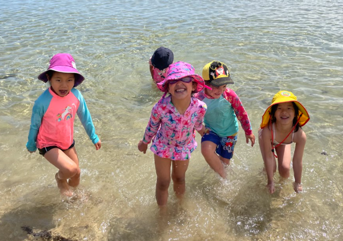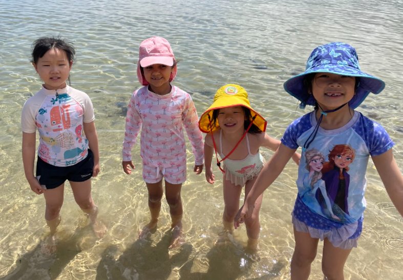 Hannah- I liked swimming in the water and making a tiny pool. I liked having my Mum at the beach. The bus trip was also fun.