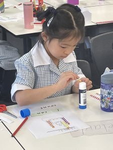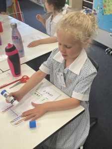 A fabulous first four days of fun and learning followed! Our busy week included; exploring our classroom and playground, making new friends, seeing the Prep boys, meeting our caring and friendly Year 6 buddies then having lunch and a play together, classroom Maths games and Literacy activities, going on a letter hunt around the girls’ school to find the letters for our SMART Spelling word of the week c a t, attending Art, Music, PE, Performing Arts and Prep – Year 2 Assembly for the first time. Phew! No wonder rest time after lunch play with a cushion, bear and book was a most welcome part of each day. We finished the week with some crafty fun and the girls wondered if their parents would recognise them disguised behind their cat masks. We are off to a fabulous start in Prep A!
