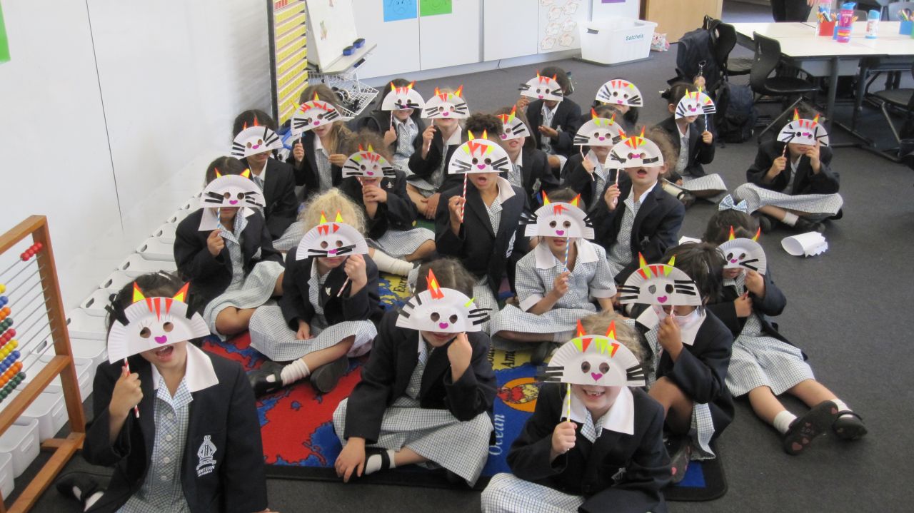 A fabulous first four days of fun and learning followed! Our busy week included; exploring our classroom and playground, making new friends, seeing the Prep boys, meeting our caring and friendly Year 6 buddies then having lunch and a play together, classroom Maths games and Literacy activities, going on a letter hunt around the girls’ school to find the letters for our SMART Spelling word of the week c a t, attending Art, Music, PE, Performing Arts and Prep – Year 2 Assembly for the first time. Phew! No wonder rest time after lunch play with a cushion, bear and book was a most welcome part of each day. We finished the week with some crafty fun and the girls wondered if their parents would recognise them disguised behind their cat masks. We are off to a fabulous start in Prep A!