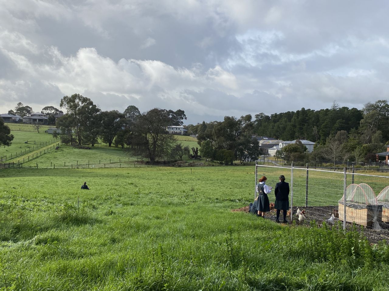 This week students in Year 5A went to the farm as part of a creative writing activity. The girls were able to spend some time walking around the farm, taking in the lush scenery with the sounds of the birds, chickens and goats. They reflected on how lucky we are to have the farm as part of our School and the peace and serenity it provides. The students spent time on their own reflecting, and wrote short pieces based on the five senses (see, hear, smell, taste, touch/feel) about their time at the farm (pictured above).
