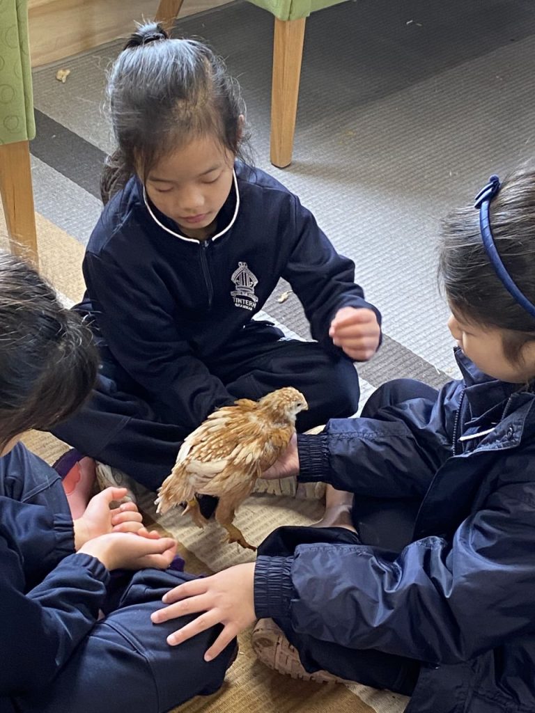 One of our favourite places to visit is the Farm. The girls were thrilled to get to meet the calves this week, spend some time with the chicks, weighing and measuring them for our maths unit on weight and graphs, and feed and hold the chickens in their new yard.