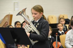 The Junior Girls’ Orchestra delighted an audience comprising of all the ELC students and Prep-Year 2 girls on Wednesday at our Meet the Orchestra concert. The Junior School Band performed first followed by a number of girls demonstrating their instruments which included flute, oboe, saxophone, trumpet, french horn, tenor horn, violin, viola, cello, double bass, harp, guitar, piano and drums.