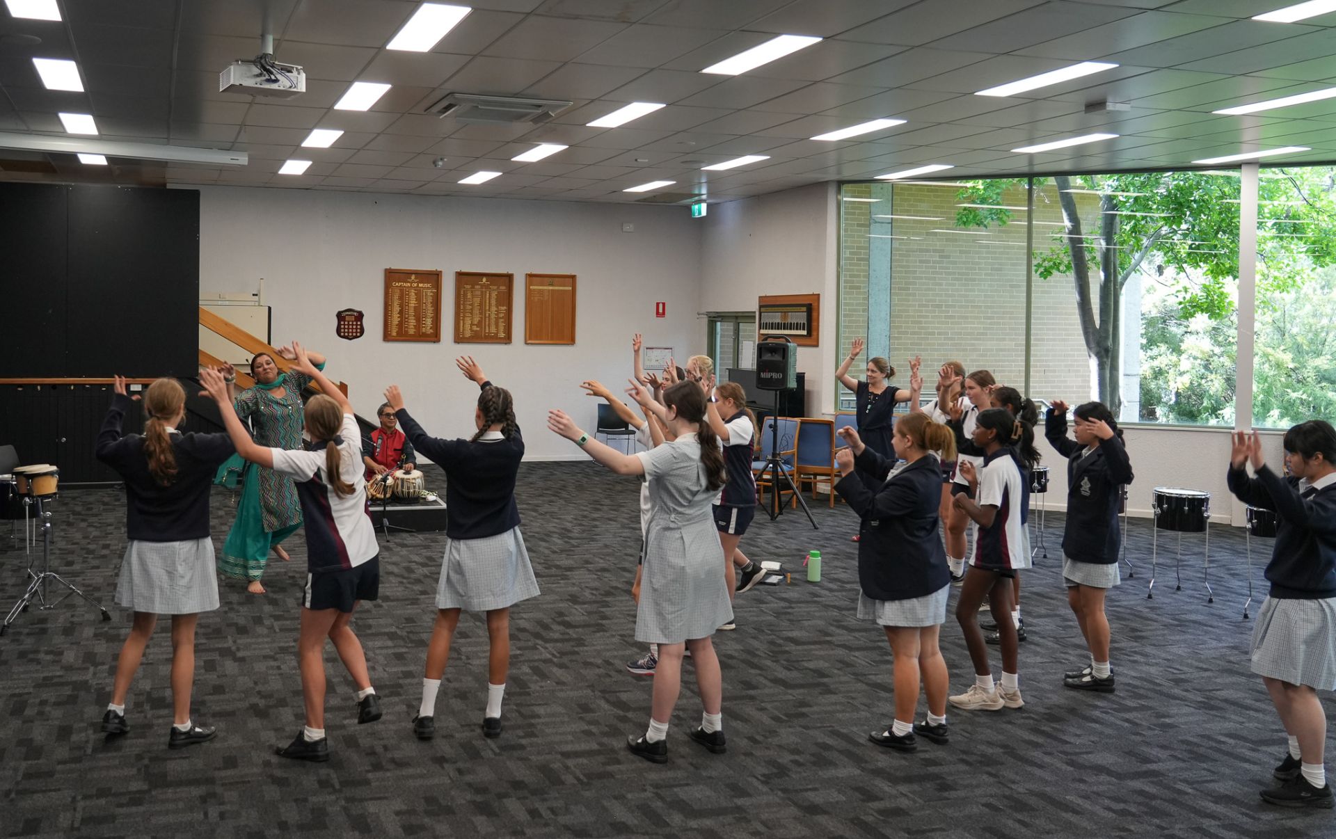 On Monday 6 March our Years 7 and 8 students were able to participate in a World Music incursion called Bollywood Rhythms. Two performers, Jamel and Dheeraj were able to introduce to our students the world of Indian Music and Dance. Dheeraj is one of Australia’s and arguably one of the world’s best Tabla players and he was able to take the students on a journey and demonstrate the complex nature of Indian music. Jamel then took on the challenge of teaching 200+ students and teachers how to dance in the style of Bollywood and to explain to them the importance of dance and music to the Indian culture and why it is important to learn about others’ cultural heritage. 8E and 8B were then treated to a session with both Jamel and Dheeraj as they worked more closely on how the music is put together and learnt some more Bollywood dance moves in preparation for the Year 8 concert in Term 2. Below is Heison Cheung’s reflections and learnings on Indian Music.