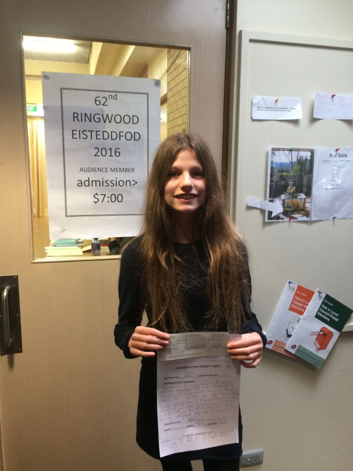 Gilda Ferrie (Year 7) competed in the Ringwood Eisteddfod last week and placed second in the 14 years and under section, playing the 2nd Movement of the De Beriot Concerto in A minor. Her other recent success at an eisteddfod was in May, where she placed second in the 18 years and under quartet division of the Boroondara Eisteddfod as a member of the Kleine Spiele Quartet with the Melbourne String Ensemble. The quartet performed the first two movements of the Emperor Quarter by Haydn, Opus 76 and Gilda played the viola with the ensemble.