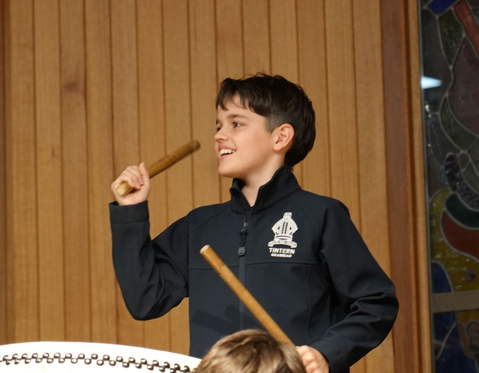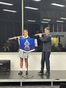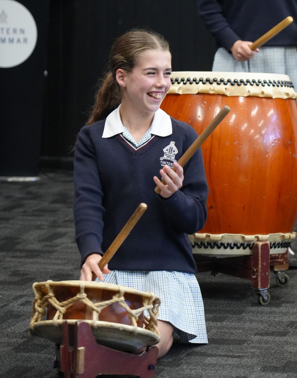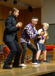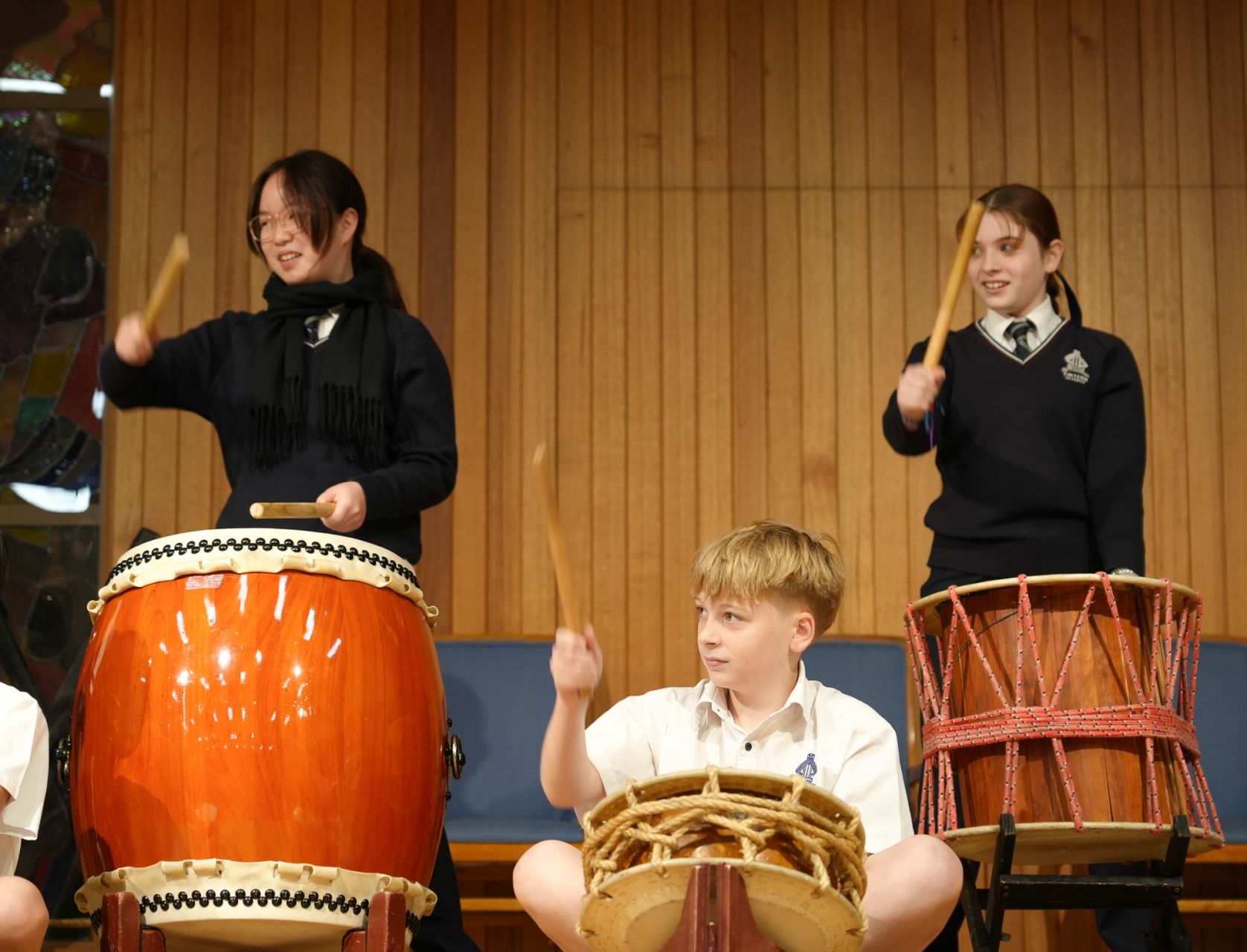 On Monday 22 April in the CM Wood Centre, Years 7 and 8 students enjoyed a Japanese Taiko drum performance by Anne and Toshi. two incredible musicians who introduced us to their instruments in an engaging and interactive way. Volunteers were asked to come up on stage and play a certain beat, and they helped us to learn the names of the instruments in Japanese. They played two different types of instruments: the shakuhachi and the taiko drum. The shakuhachi is a flute made with bamboo. The musician plays the different pitches using their breath, head, and throat, as well as the holes in the bamboo. Unlike other flutes, the shakuhachi is played vertically, instead of horizontally. The taiko drum is played by hitting the surface of the drum with drumsticks, known as bachi. There are different sizes of taiko drums and bachi, known as either oki (large), or chisai (small). After this wonderful performance the Year 8 classes currently studying music enjoyed a workshop with Toshi where we learnt how to play the taiko drum, and how to play different rhythms and timbres. Toshi then taught us a group piece with multiple parts. Each part had a different rhythm that suited the tone and size of each drum and drumstick. Many agreed that this was one of the best world music concerts we have had so far! Everyone who participated had so much fun!