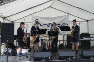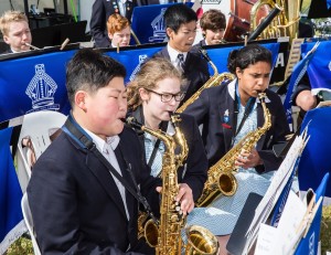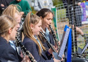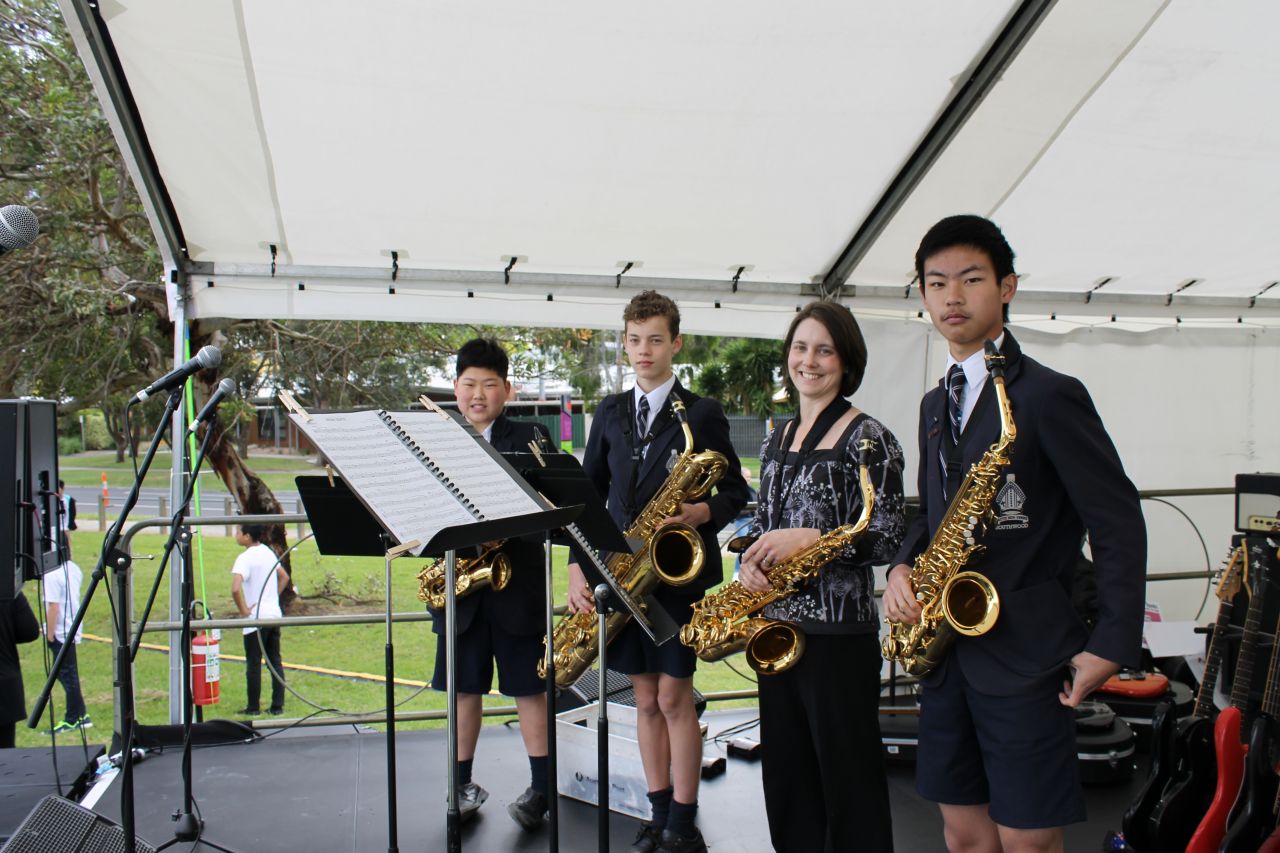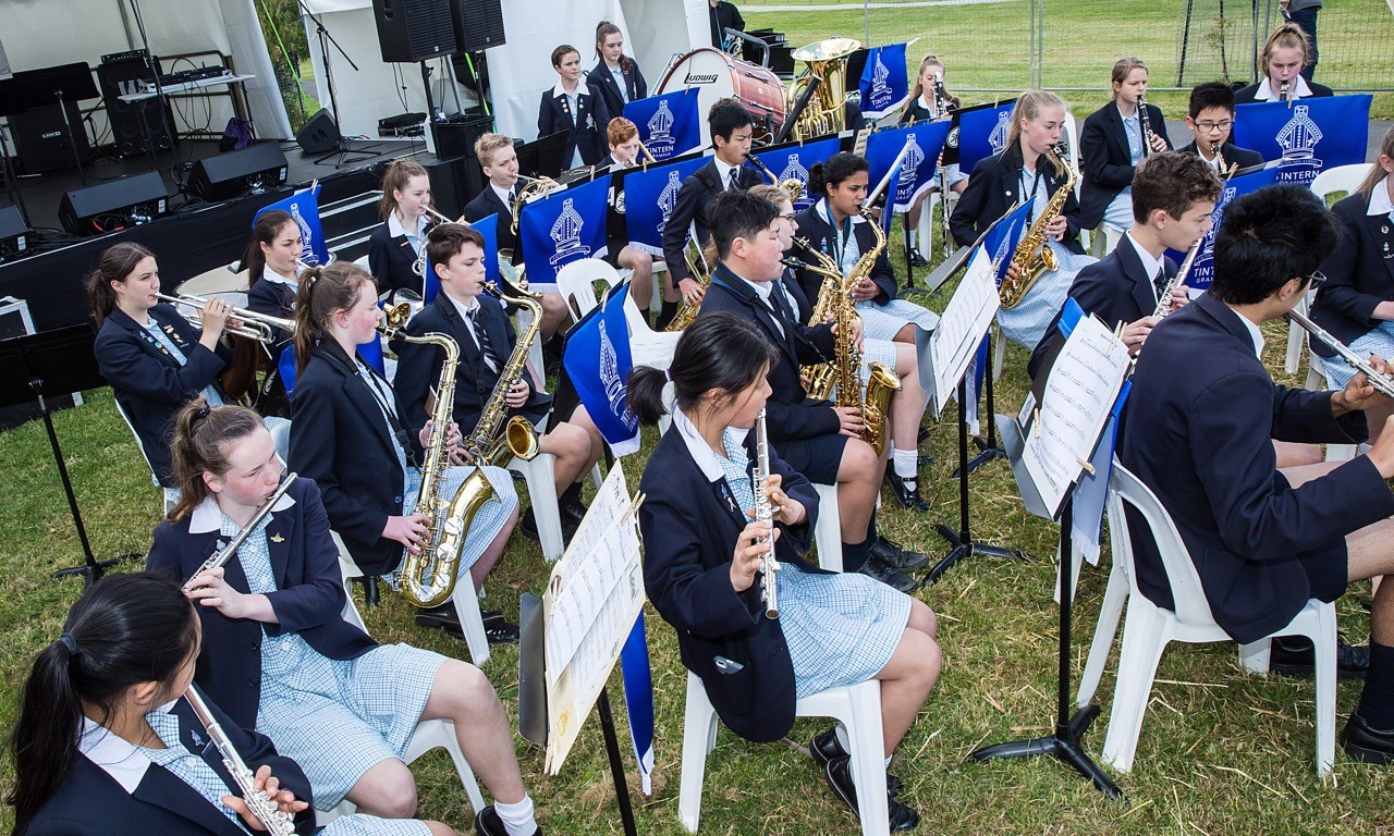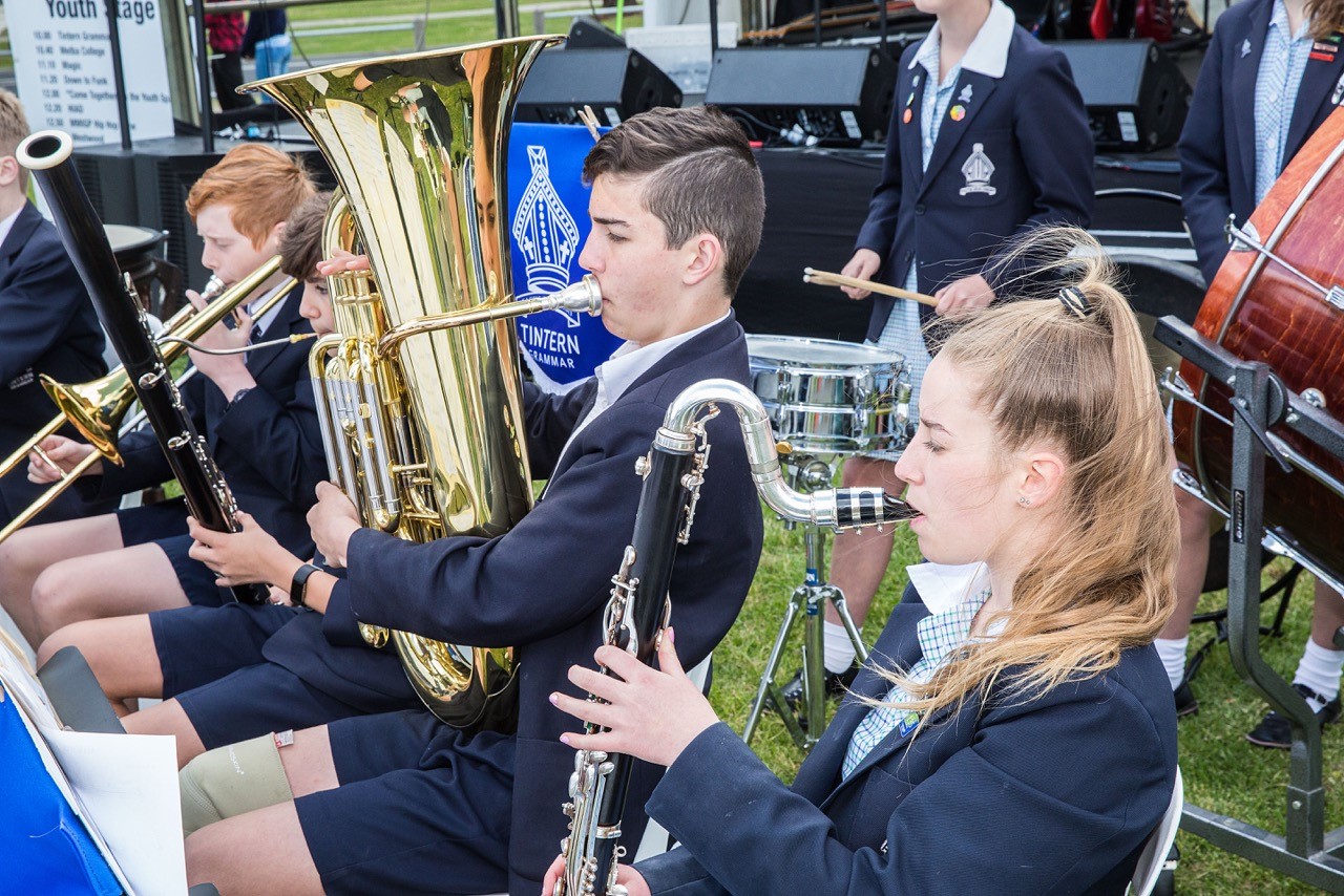 On Sunday 6 November, the Tintern Grammar Concert Band and the Saxophone Ensemble performed at the Maroondah Festival. Performing at the Youth Stage, Town Park in Croydon, Tintern was one of the few schools performing during the festival, as well as other performers such as a Pipe Band, choirs and dancers. We were very thankful that it didn’t rain; however, it was quite challenging at times due to the gusty winds. Luckily, our pegs held our music fairly securely and Mrs Clarke managed to hold her score and conduct us at the same time. The Concert Band played several pieces that we have been rehearsing lately; March of the Aliens, Witches Brew and Wombat Shuffle. The Saxophone Ensemble performed The Pink Panther, an Irish Suite and Take on Me. It was great to have the support of our families, teachers and friends in the audience, and afterwards we all enjoyed the rest of the festivities at the Maroondah Festival!