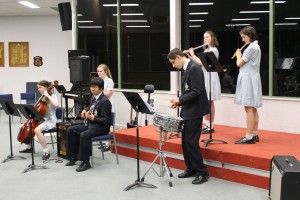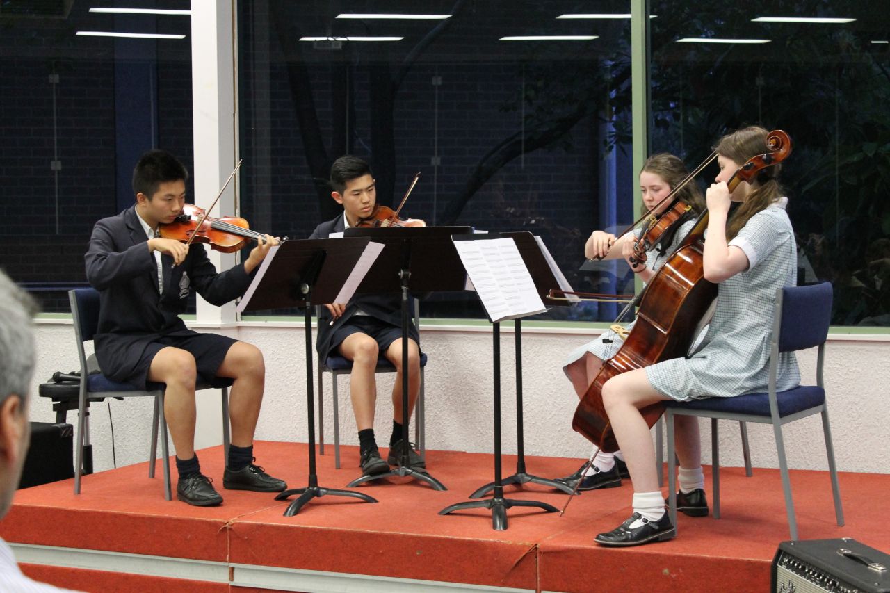 The 8/9/10 Music Elective Concert was held on the evening of Wednesday 9 November as a way to showcase the creative efforts of the members of the elective music classes this year. There was a wide variety of group performance pieces, ranging from a sung Elizabethan Madrigal to a modern percussion ensemble. The Year 10s’ major assignment of the semester was an open-ended project, for which a few students decided to arrange pieces for small groups. Charlotte Menagh arranged a mashup of themes from Harry Potter, The Hobbit and Sherlock for members of the class and Holly Fryer arranged a pop song for the Clementson String Quartet. In addition, all members of the Year 10 class performed a solo.