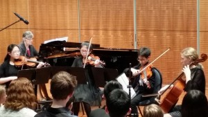 Most of the compositions were for solo piano, performed by the student composer. There were 3 other works, one for clarinet and piano, one for saxophone and piano, and Molly’s composition for string quintet written for 2 violins, viola, cello and piano. I was captivated by some of the solo piano works that used complex rhythms with expressive, lyrical melodies. Some of the student composers were as young as 9 years old! The concert was an eye opener to the world of music composition that knows no bounds.