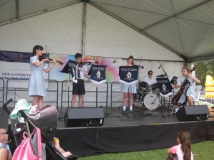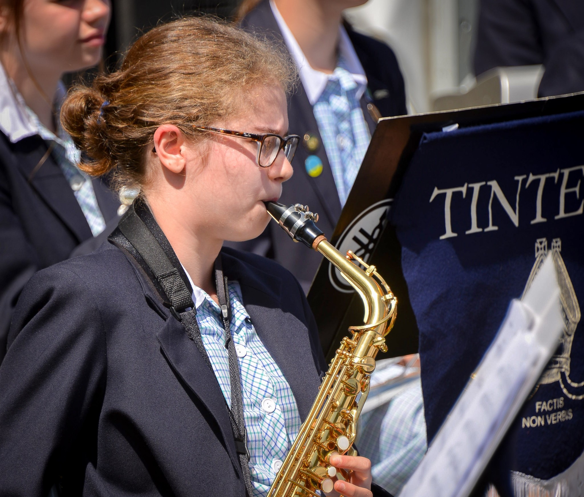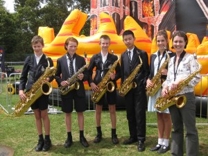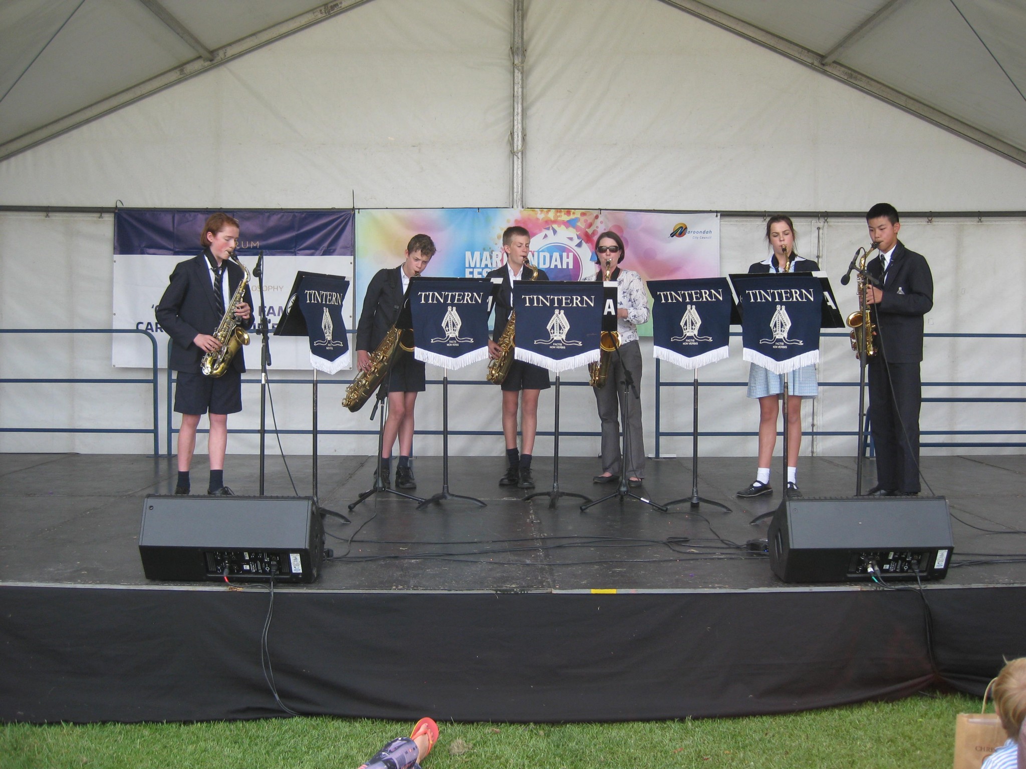 It was a hot and bright sunny day and we all arrived energetic and prepared to perform at the Maroondah Festival. The Concert Band, the Saxophone Ensemble and the Electric String Quartet (with support on drums from Rory Shepherd) all gave great performances and showed the large audience the musical best of what Tintern has to offer. Once everyone was ready on stage, we performed to our best and Mrs Bezaire said we were great ambassadors for Tintern. It was exciting to play at such a large event. We would like to thank Mrs Clarke and Mr Veldman for helping us rehearse and for offering us this wonderful opportunity.