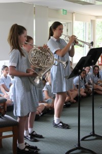 On Friday 30 October, the Tintern Intermediate Choir and Scrolls String Orchestra were given the opportunity to perform for the elderly citizens of Aveo Mingarra Retirement Village. The program consisted of five choral pieces, three works for string orchestra, a brass trio, a flute trio and number of solos on violin, cello and piano. The pianists on the day had to deal with an unfamiliar keyboard, but they persevered to perform enjoyable pieces. It was evident that the residents of the Village greatly enjoyed each performance. Some were heard singing or humming to the tunes of well-known pieces, such as the Seeker’s Celebration Medley performed by the Intermediate Choir, the Star Wars theme performed by the brass trio, and Lascia ch’io Pianga played on ‘cello. The girls and boys have gained experience from performing to a variety of generations and adapting to a new venue with different equipment. We know that on this occasion, we gave the elderly residents something to enjoy and smile about.