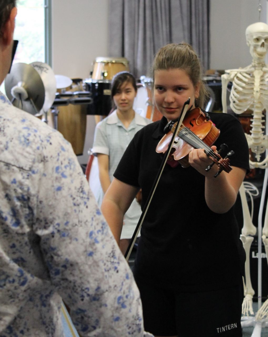Michael’s entertaining method of delivering these ideas resounded very well with the 20 musicians who participated. The violinists, violists and cellists witnessed a master class, during which accomplished violinist Alison Yang (Year 11) performed a section from Beethoven’s Violin Concerto. They also took part in communal activities featuring a skeleton, a teddy bear and imaginary pieces of string. The feedback from the instrumentalists involved was overwhelmingly enthusiastic and we are hoping to follow up with more of these sessions later in the year.