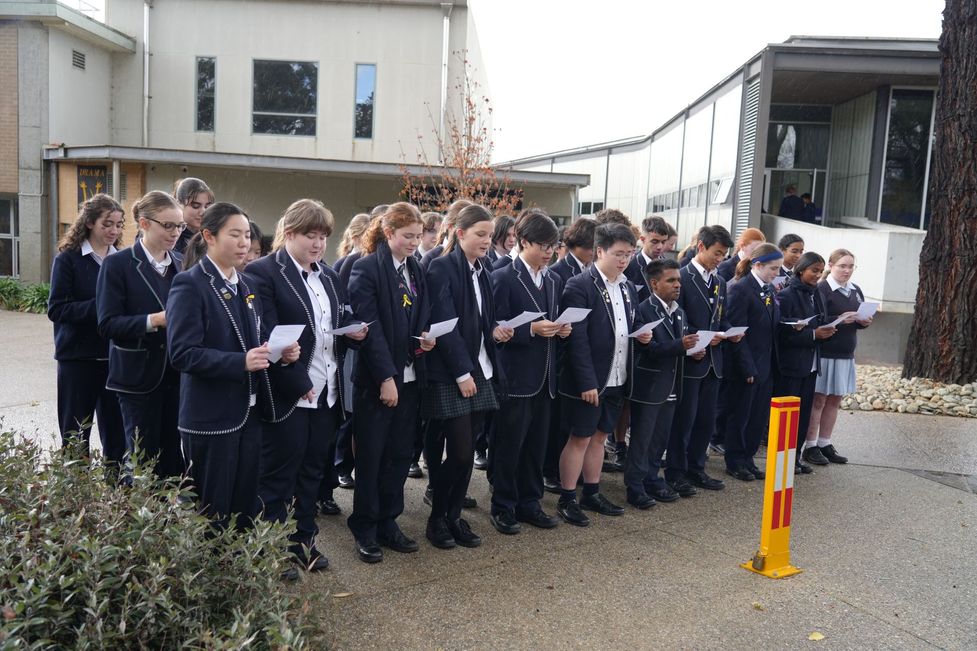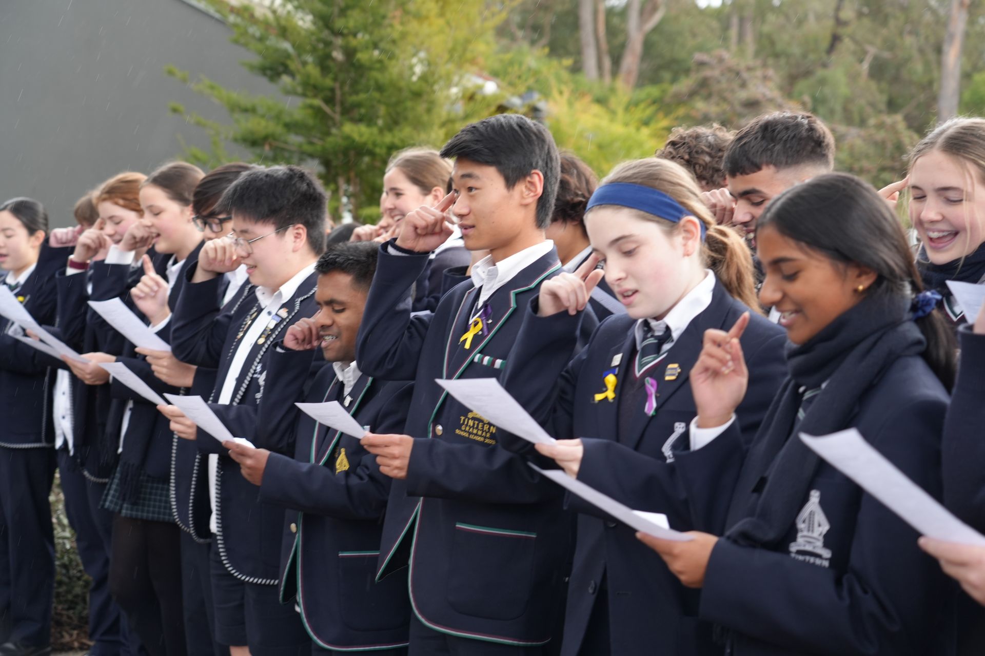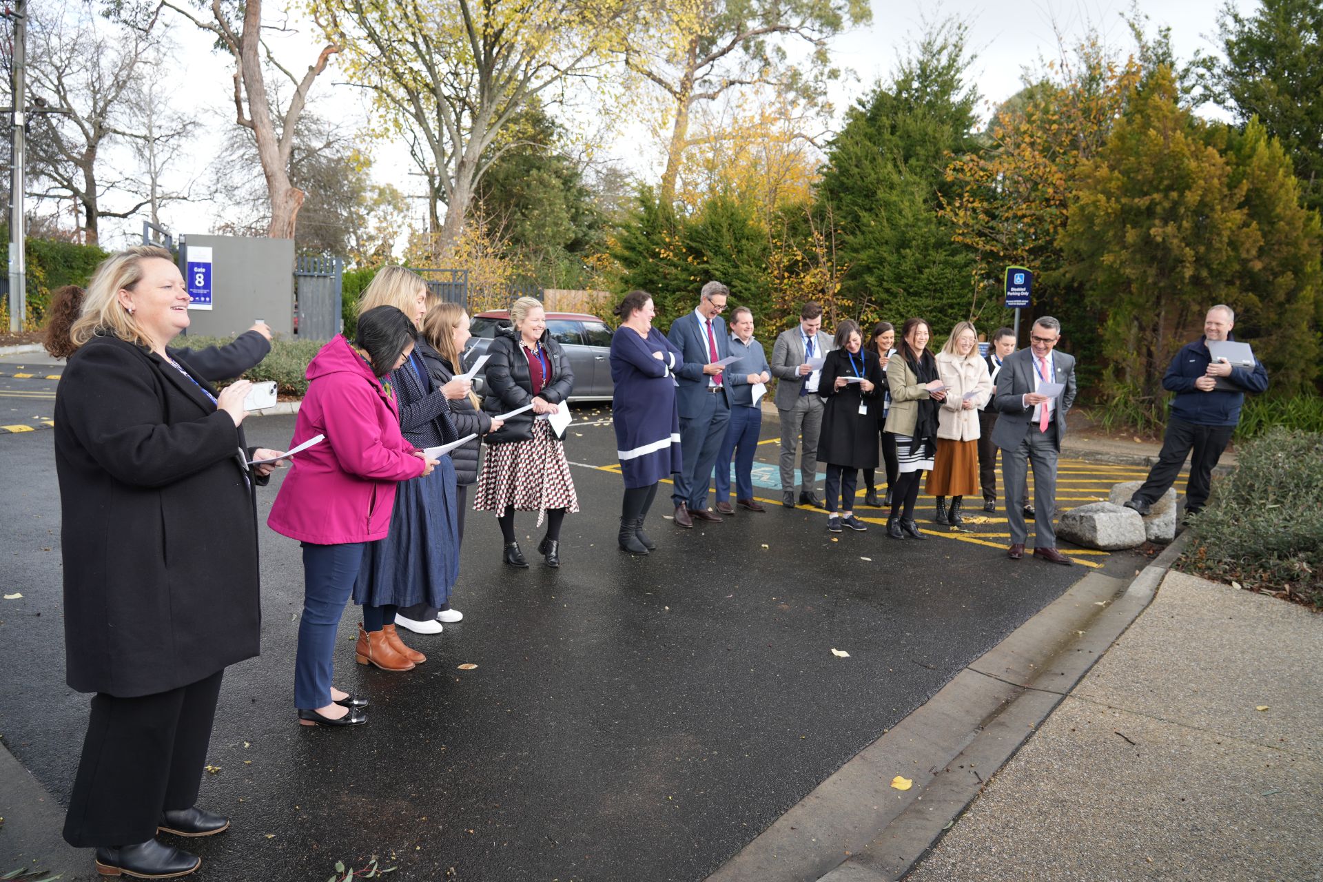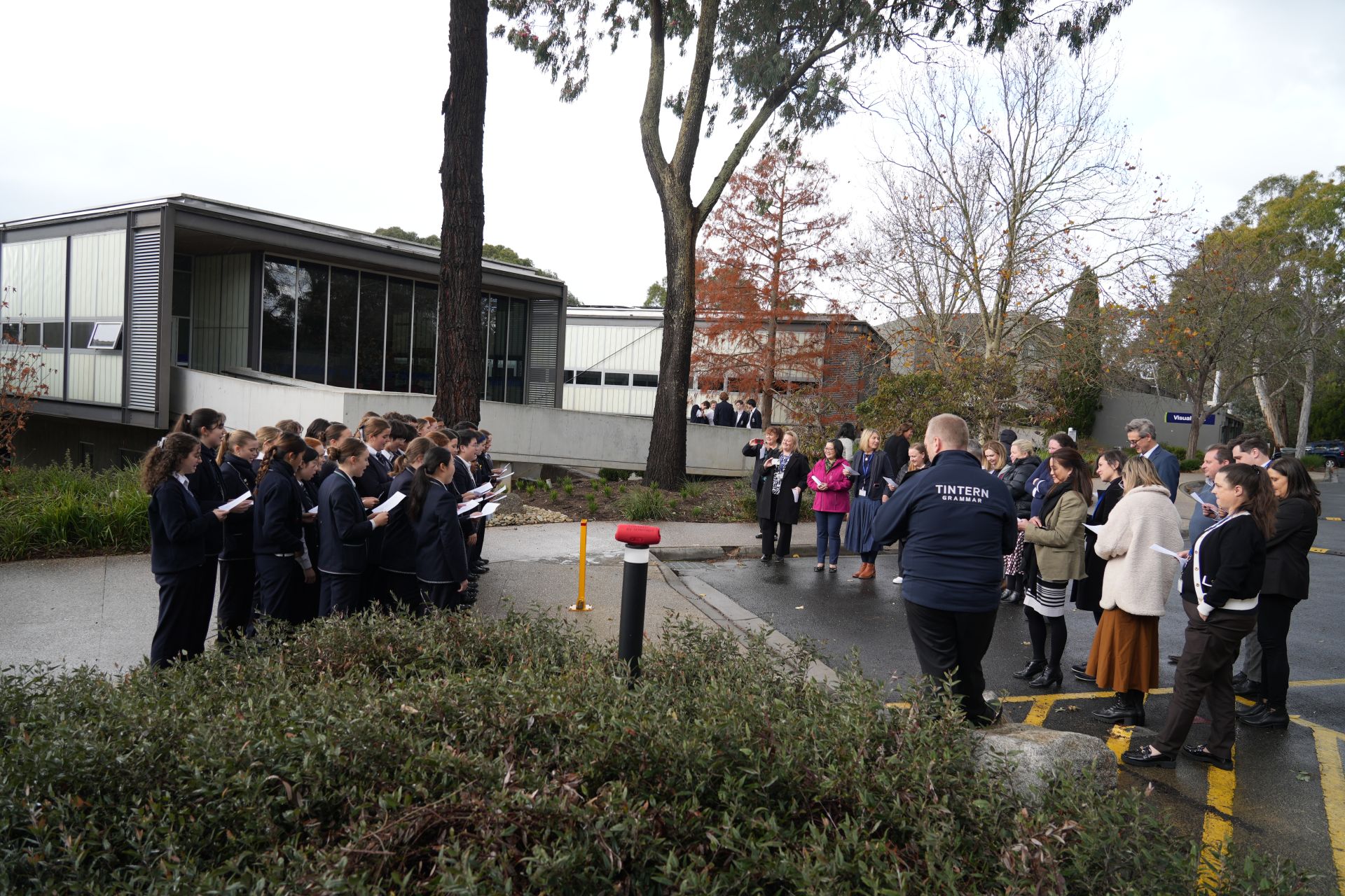 The Concert Choir popped up between the rain showers on Tuesday 3 June and provided an unexpectedly delightful song of appreciation for the hard-working team in our Administration Building. The lyrics of Justin Timberlake’s ‘Can’t Stop the Feelin’’ were reimagined by choir members and school leaders, Daniel Sun and Arya Yogesh Kumar and the choir ‘surprised’ the team with a spontaneous performance of their creation in the Admin Carpark. It was lovely for the students to set eyes on our hidden gems from the Admin Building and a nice break from routine for the Admin Team to enjoy a little musical love from the choristers.