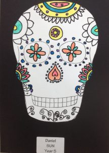 During our study of Art From Other Cultures, the Years 5 and 6 boys explored the Mexican celebration – Dia de los Muertos or Day of the Dead. It is a day to celebrate life and death, and decorated sugar skulls are offered to lost loved ones. Look how creative our boys were with their sugar skulls!
