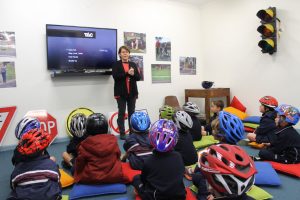 …riding the bikes through the traffic lights and watching the safety videos. Declan