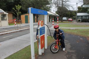 …riding the bikes on the pretend roads and going on the off road track. Fion