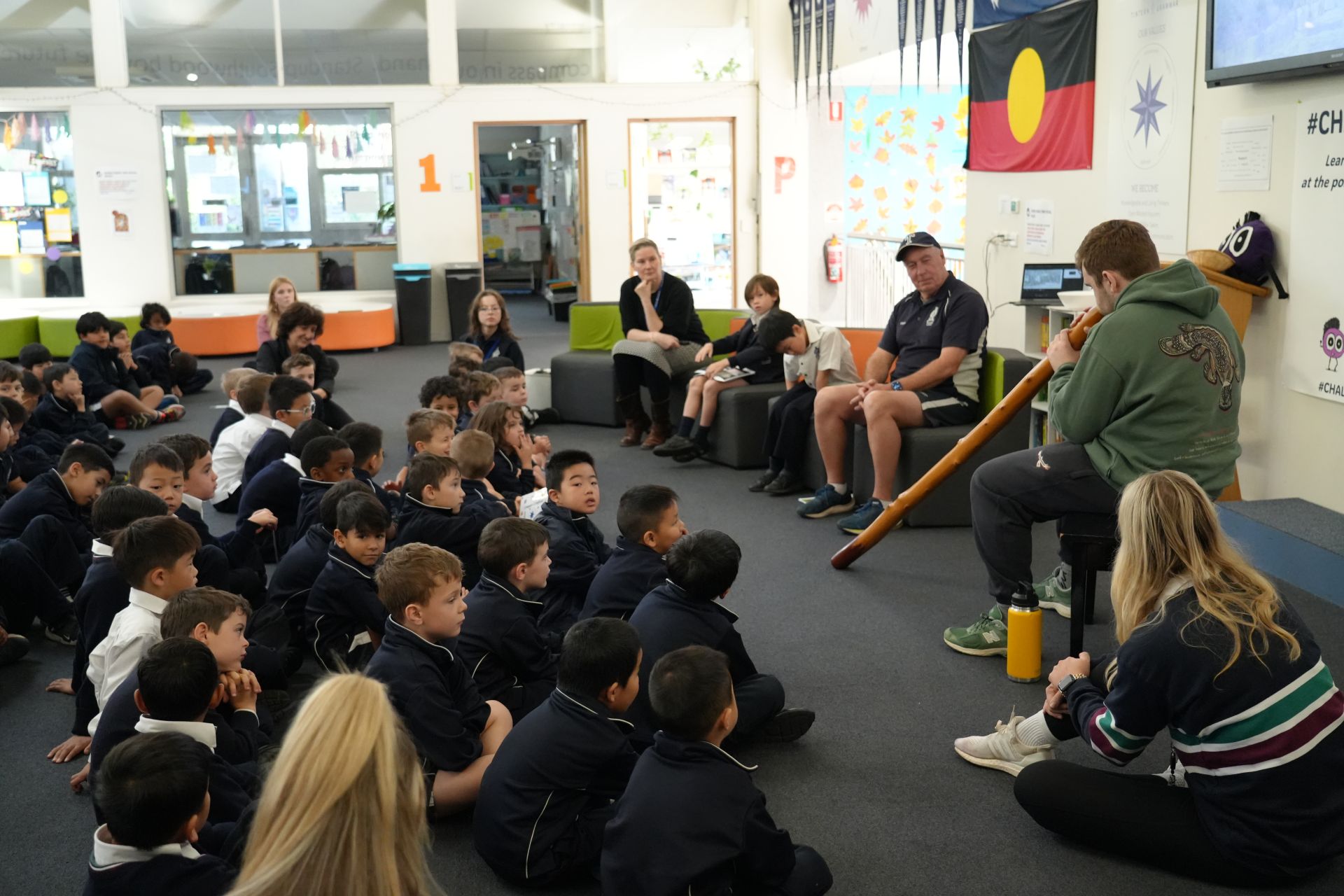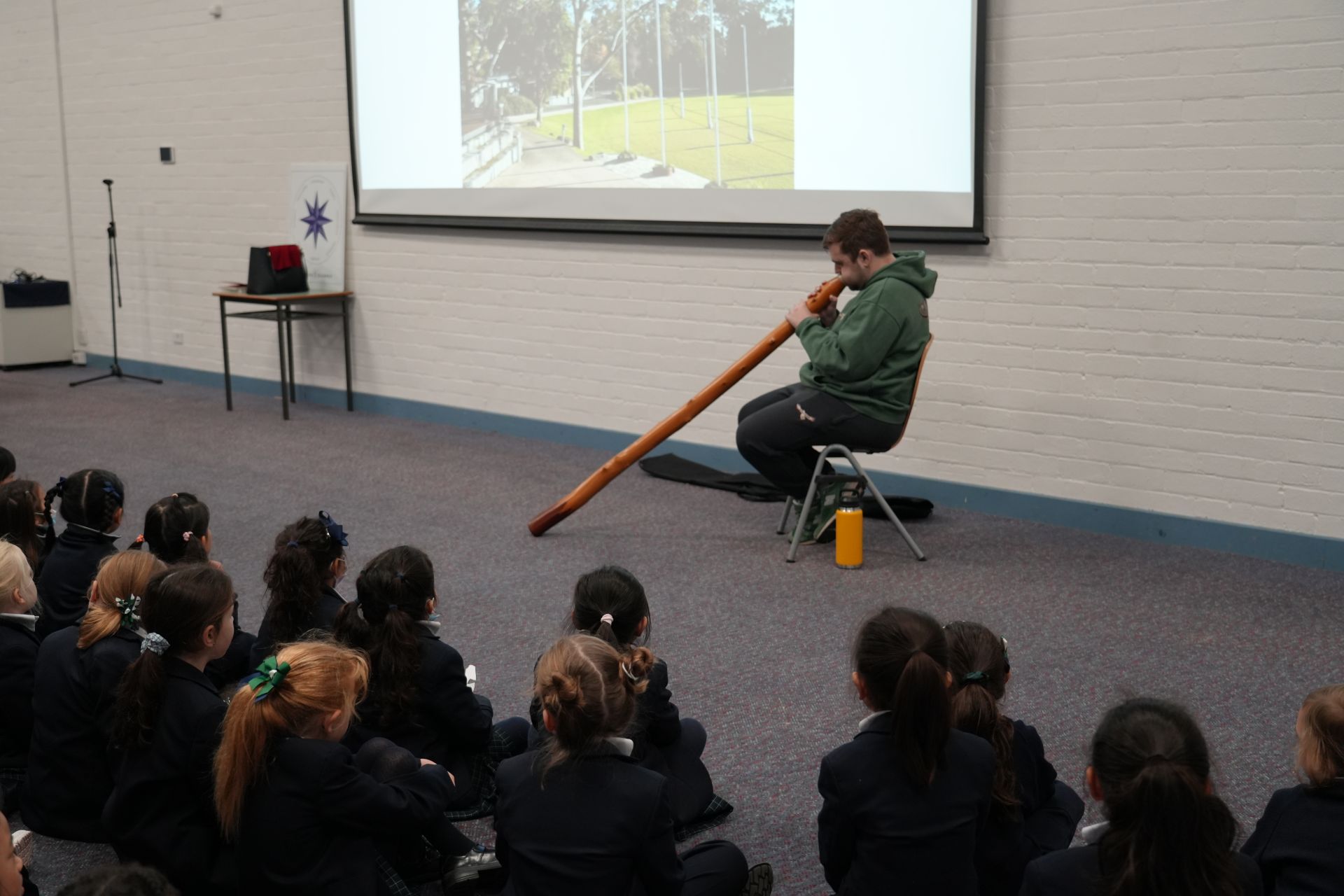 Last week students arrived at School to the beautiful sound of the didgeridoo calling across the campus as the cockatoos joined in. Playing the didgeridoo was Koobaroo, Murrundindi’s grandson, and just a week earlier Murrundindi had joined us for the annual Secondary School Cathedral Service at St Paul’s.