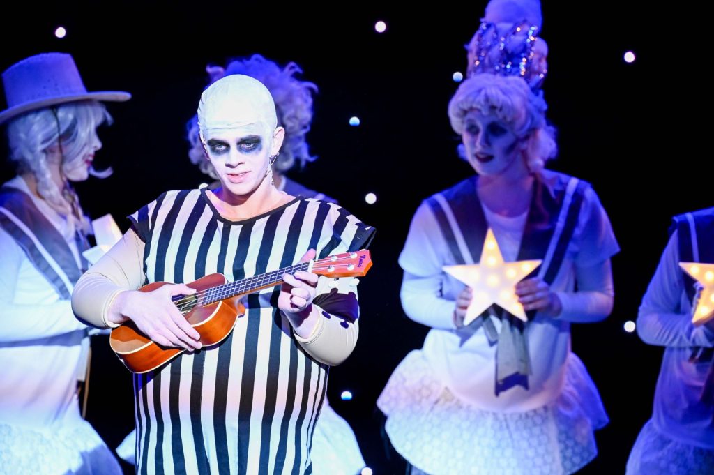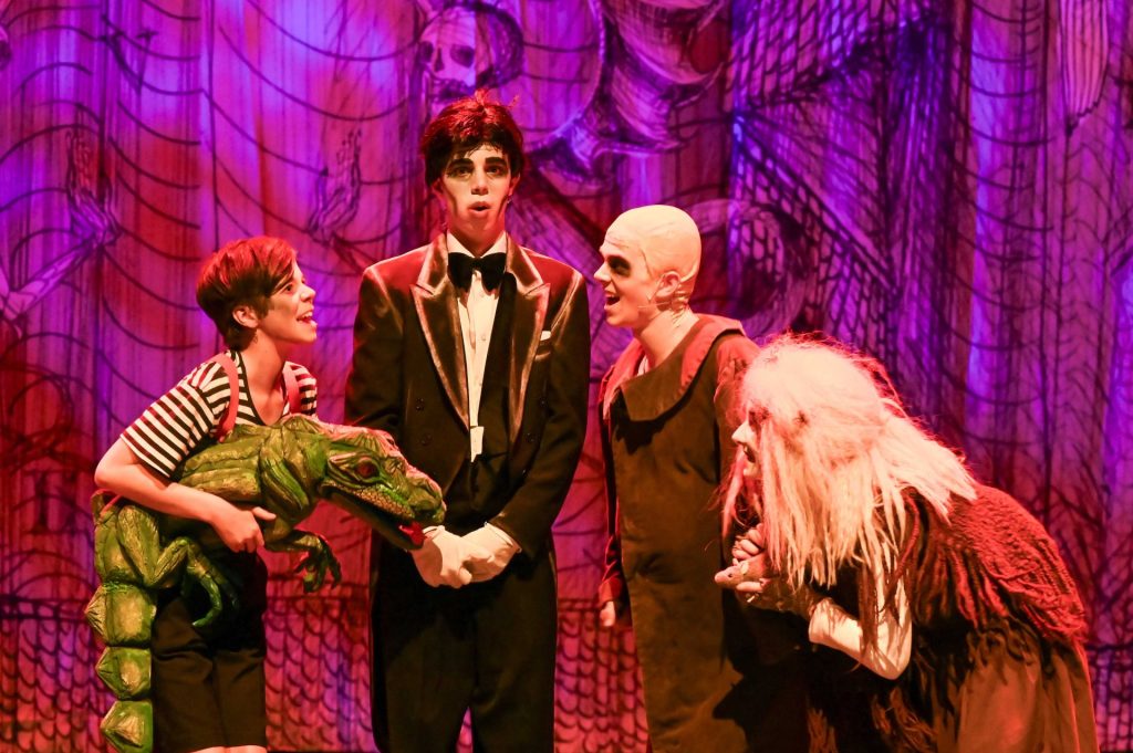 After this smashing opening number, the audience meets Fester played by Harry Bridgford as he traps the ancestors from returning to the afterlife. But why?… Because Wednesday Addams, played by Emily Stokes, has fallen in love and the ancestors assistance is needed to ensure that love triumphs. Gomez soon finds out about Wednesday’s secret engagements and struggles to choose between keeping a secret for his daughter and telling his wife the truth, as he’s never kept anything from Morticia.