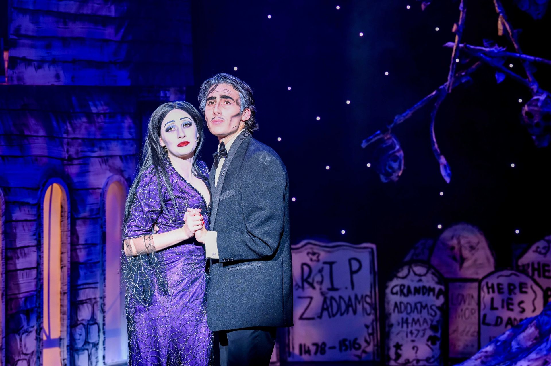 In Act 2, Morticia performs her hit 11 o’clock number Death is just around the corner as she tries to calm herself after finding out her husband and daughter have been lying to her. Gomez also deals with the happy/sad thoughts associated with accepting the fact that his daughter is growing up. As Morticia and Gomez still struggle to make amends, Lucas and Wednesday start to reconnect as they realise how crazy they are for each other and Wednesday finds out that Lucas is willing to die for her. To the surprise of his wife Alice, Mal also has morphed into his younger hip-self and their love is revived.