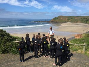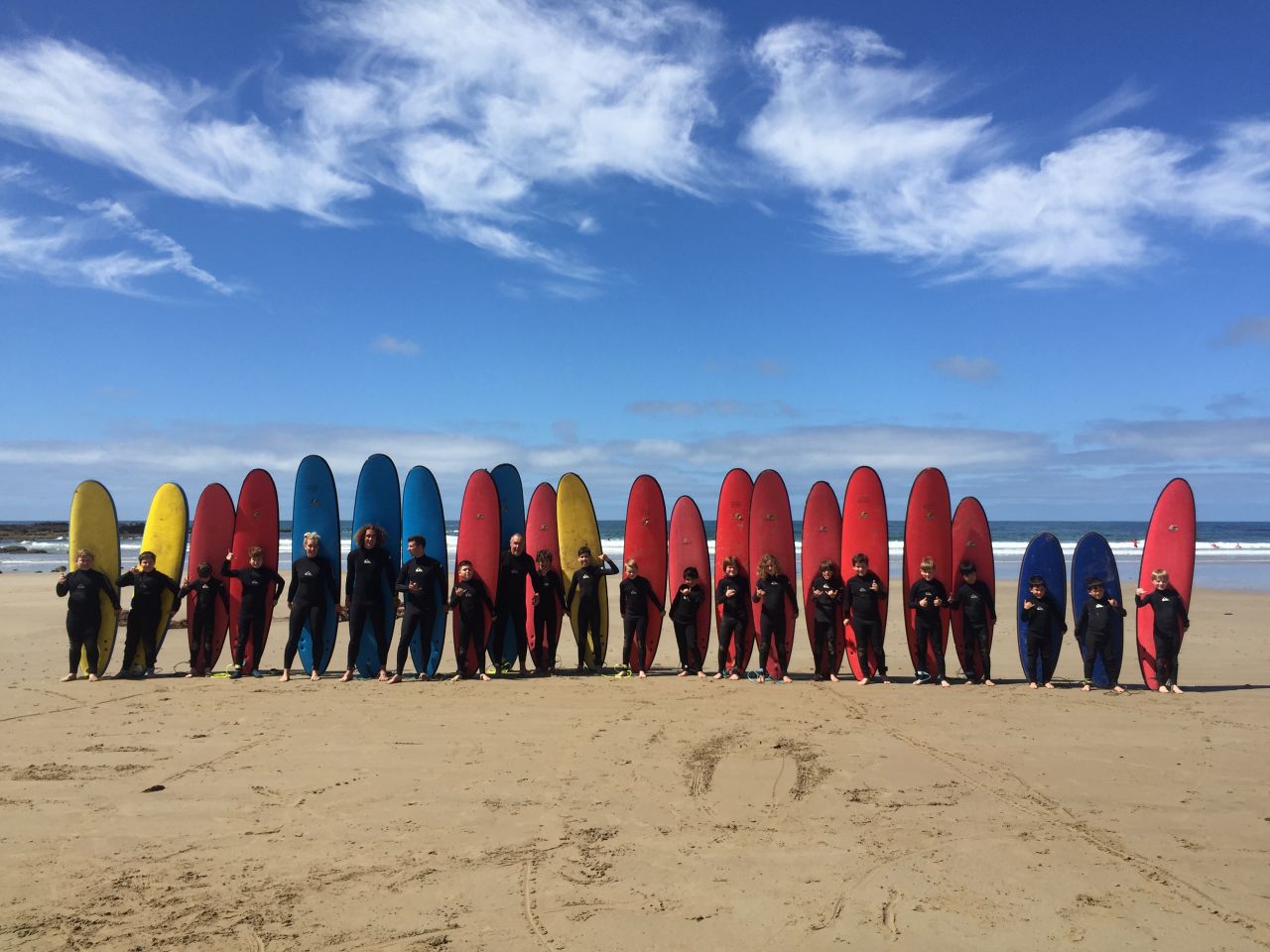 On the first day, we went to the beach. We had a choice of either playing on the beach or going in the water. Some people played beach cricket, some dug holes or made sandcastles and some swam in the water. Everyone seemed to have lots of fun. After a while, the instructors came down and asked if anyone wanted to go boogie boarding. Five people put on wet-suits and head off. Overall, it was great fun. – Will Kenny