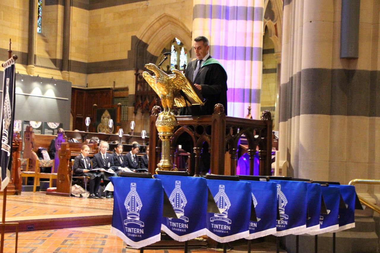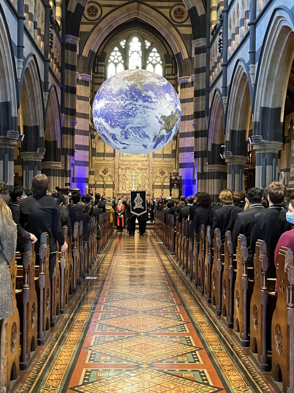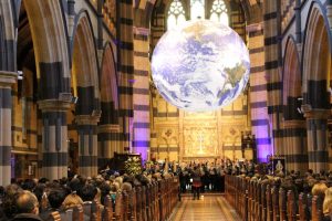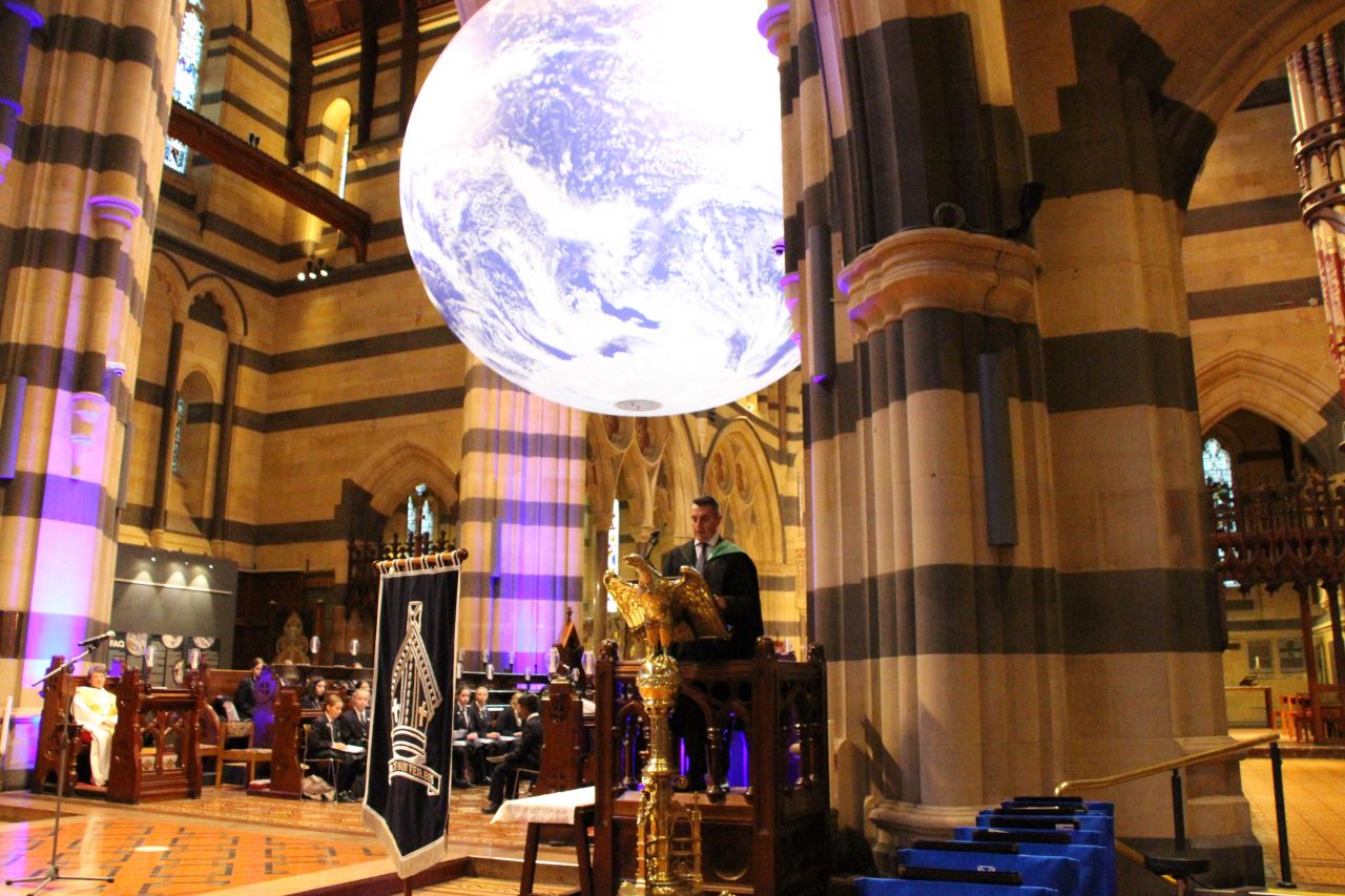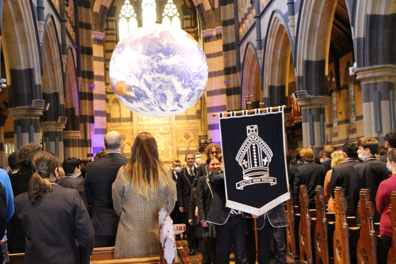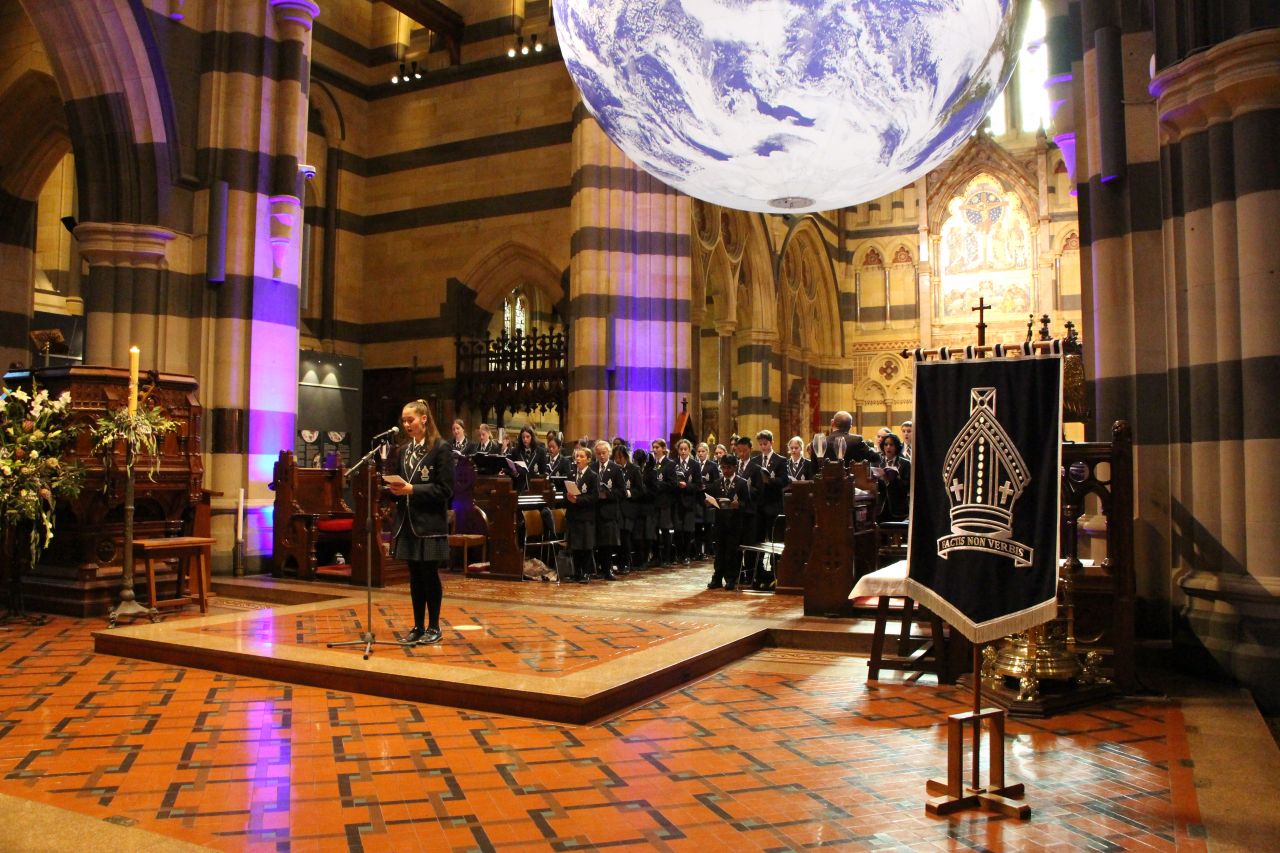 Every year, Tintern Grammars Secondary School plus community members and parents gather together to worship in St Paul’s Cathedral Melbourne. This year our theme was, ‘Dear World, Love God’ with John 3:16 as our main focus. Throughout the service the music, the prayers and the sermon all reflected this theme and linked together to remind students of God’s love for creation, and God’s love for us. Our preacher was the Rev’d Dr John Capper who enthralled the students with his reflection on this theme. The 7m wide Globe hanging and rotating slowly at the front of the Cathedral meant that our world was central to the whole service.