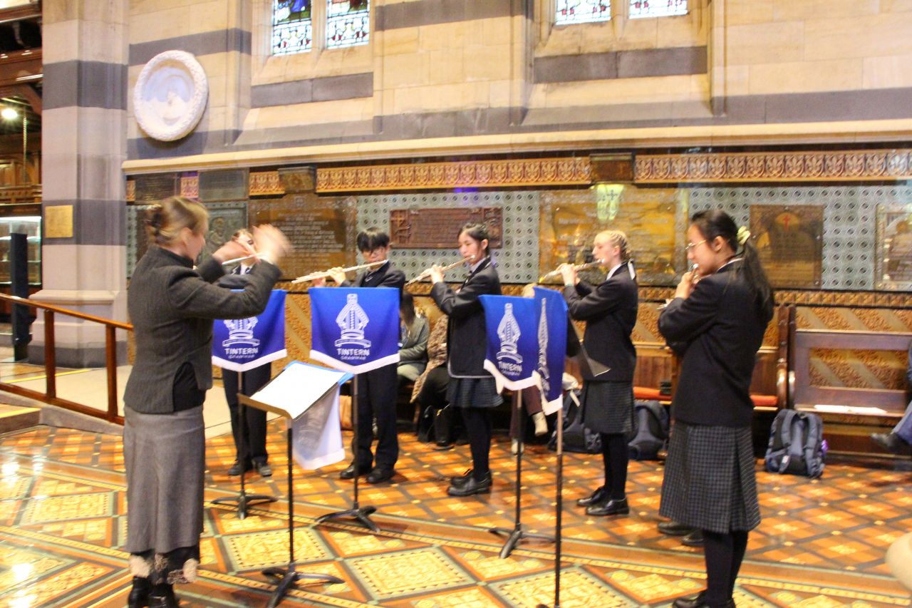 On Thursday 5 May, Tintern Grammar held its annual Cathedral Service at St Paul’s Cathedral. The day started with members of the Tintern Grammar Chamber Orchestra, Concert Choir, Intermediate Choir and Chamber Choir heading in to the Cathedral for rehearsals. We were greeted with the sight of ‘Gaia’, a huge art-work installation 7 metres across floating before us. After rehearsing our items throughout the morning, we headed off to Federation Square for lunch, where we were rewarded with a few moments of glistening sun; a welcome change in this cold autumn.